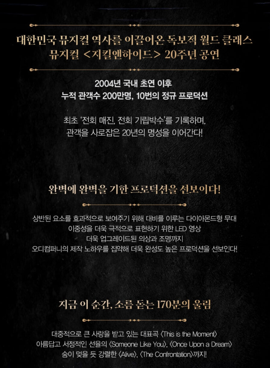 2025년 5월, 뮤지컬 팬들의 심장을 다시 뛰게 할 명작 **<지킬앤하이드>**가 서울 용산 블루스퀘어 신한카드홀에서 펼쳐집니다. 한국에서만 무려 20주년을 맞이한 이 뮤지컬은 매 시즌마다 전석 매진을 기록하며 '레전드'의 자리를 굳건히 지켜왔죠.