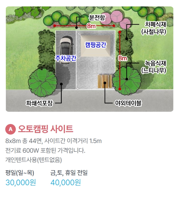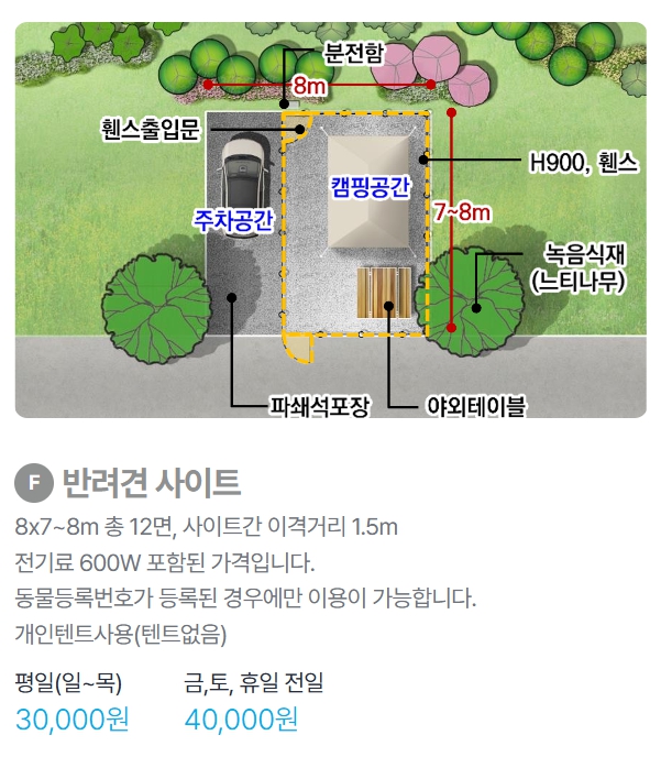 | 오토캠핑/반려견 | 30,000원 | 40,000원 | 40,000원 |