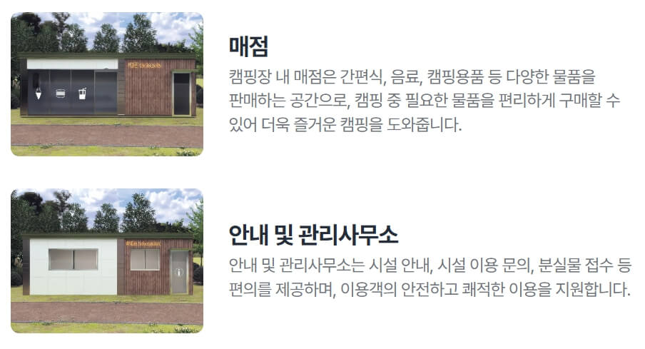 - 주차장: 오토캠핑장 포함, 부설주차장 70면 확보