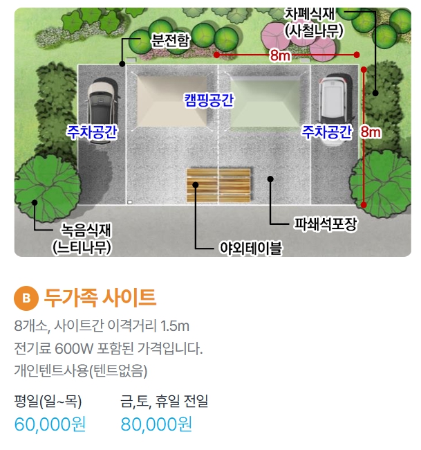 | 두 가족 캠핑 | 60,000원 | 80,000원 | 80,000원 |