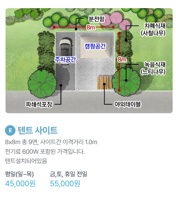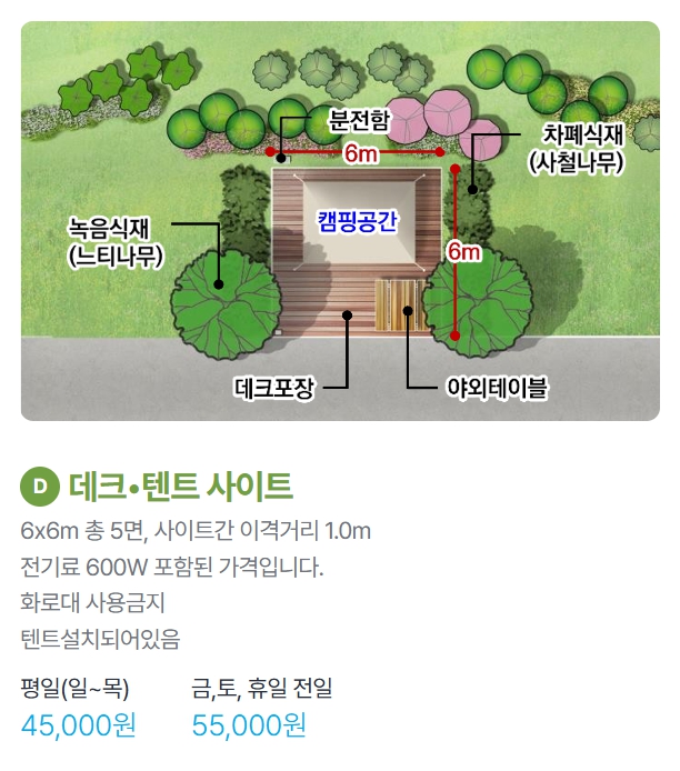 | 텐트/디크 캠핑 | 45,000원 | 55,000원 | 55,000원 |