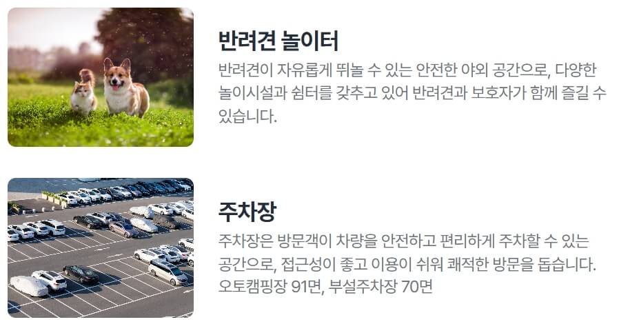 - 반려동물, 어린이 동반 가족 모두를 위한 맞춤형 시설