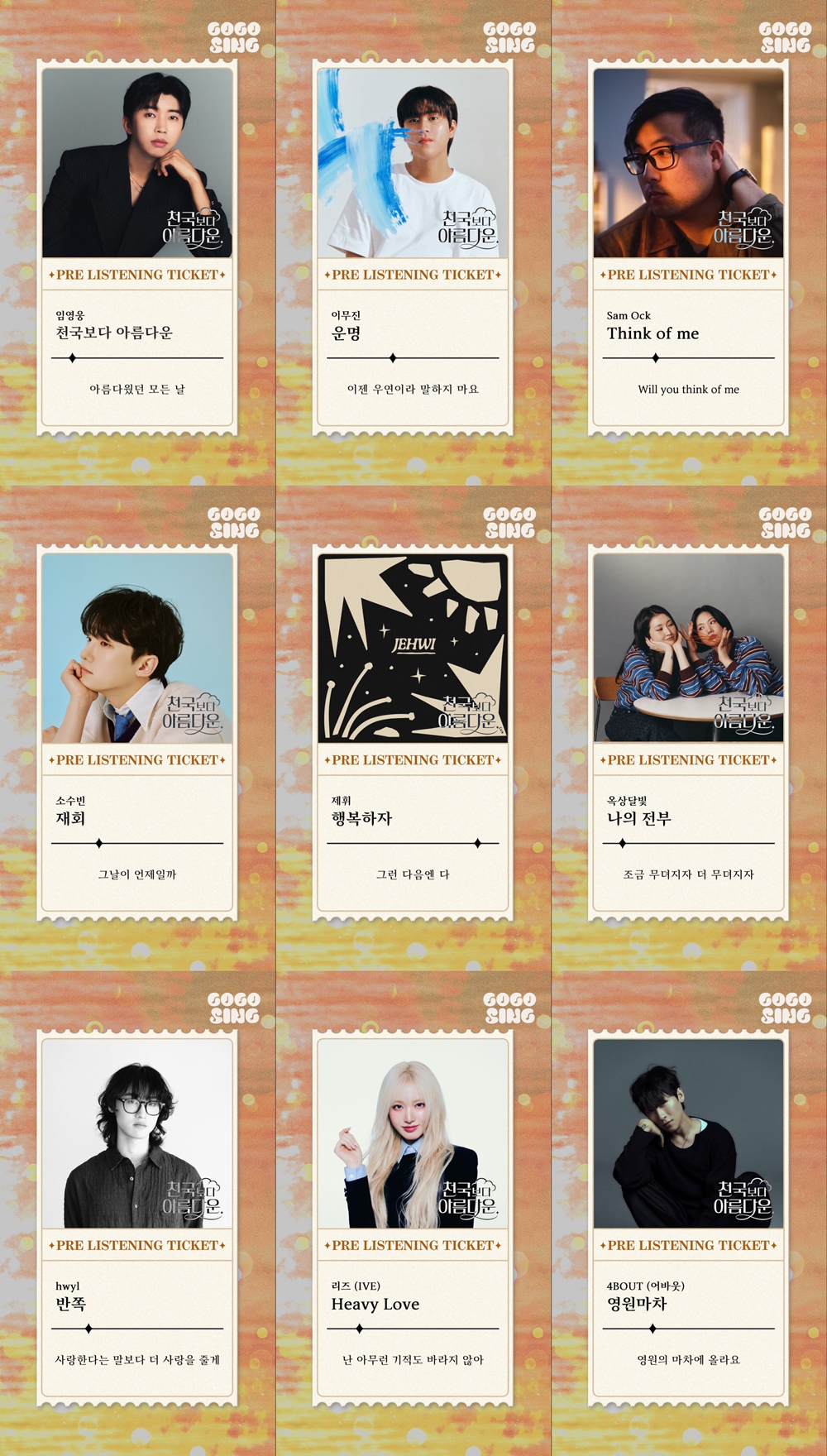 임영웅, 이무진, 샘옥, 소수빈, 제휘는 물론, 옥상달빛과 휘일, 아이브 리즈, 어바웃까지 이름만으로도 귀를 사로잡는 아티스트들입니다.