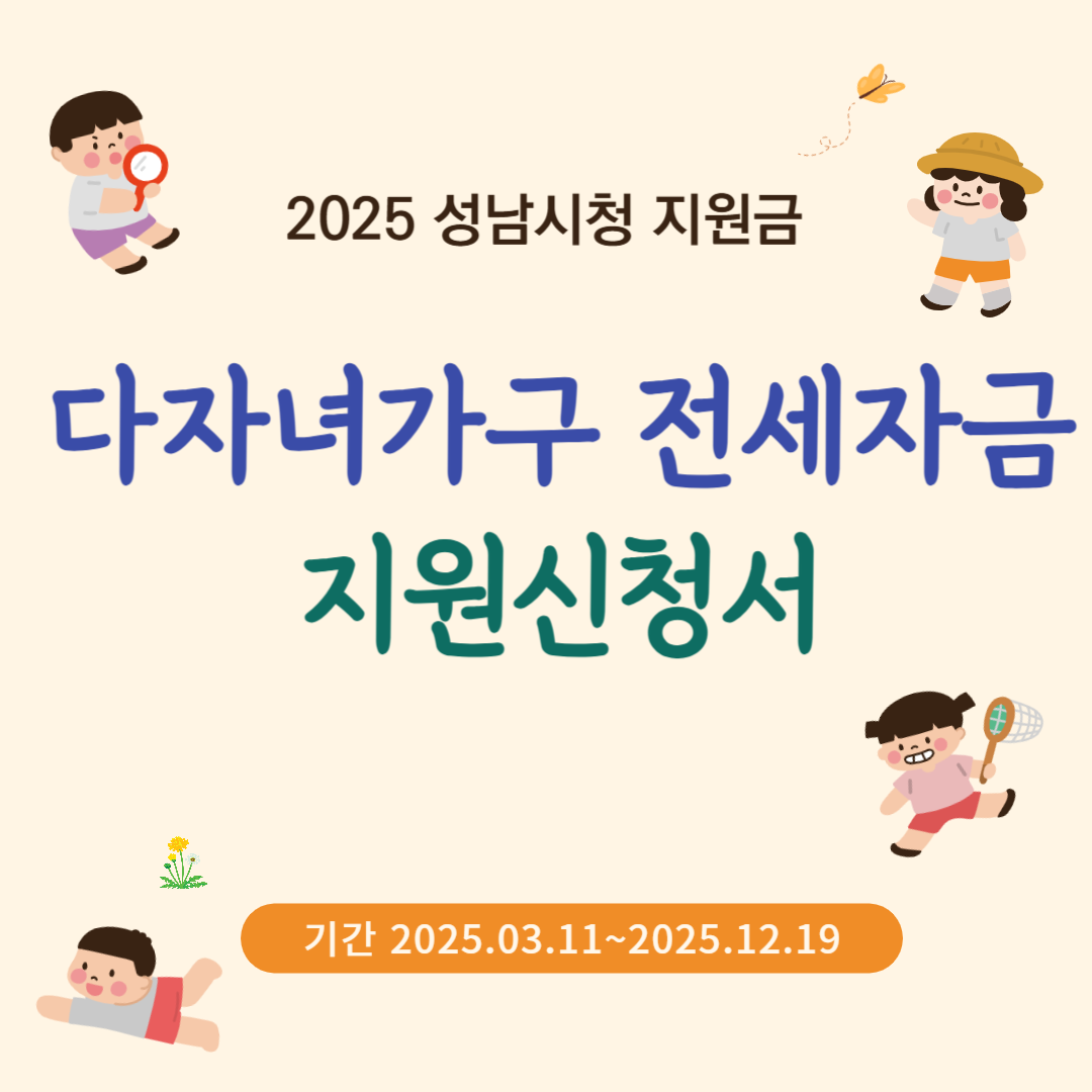 안녕하세요! 오늘은 세 자녀 이상을 키우는 성남시 다자녀 가구를 위한 '전세자금 대출이자 지원 사업'을 소개해 드릴게요