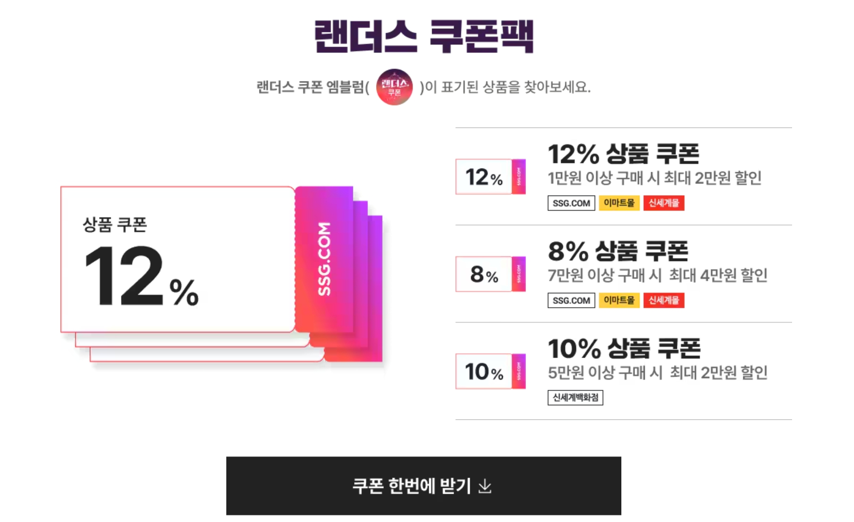 - SSG MONEY 적립 또는 추가 쿠폰 제공
