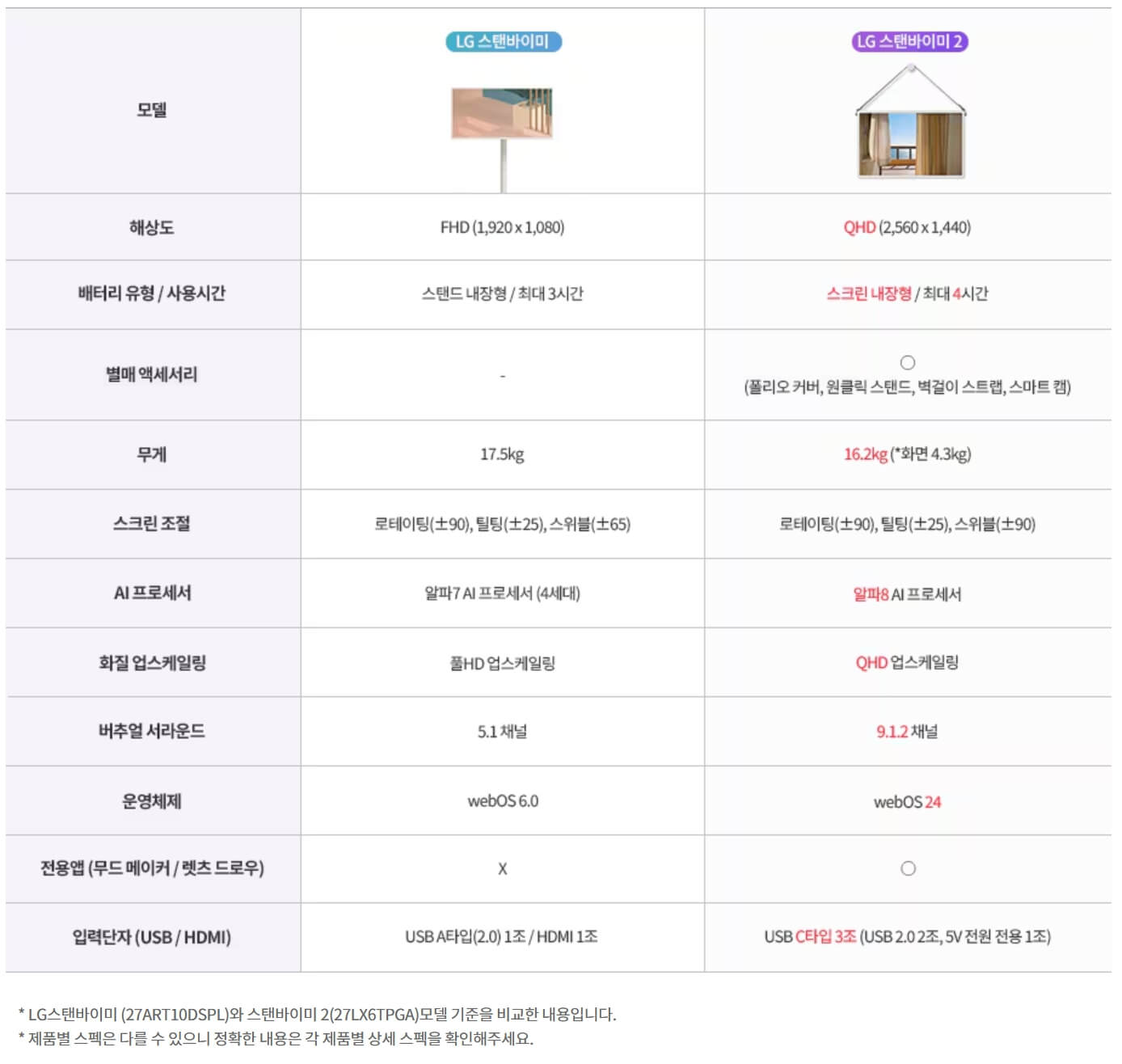 자, 지금까지 LG 스탠바이미 1세대와 2세대 전격 비교를 해봤어요!